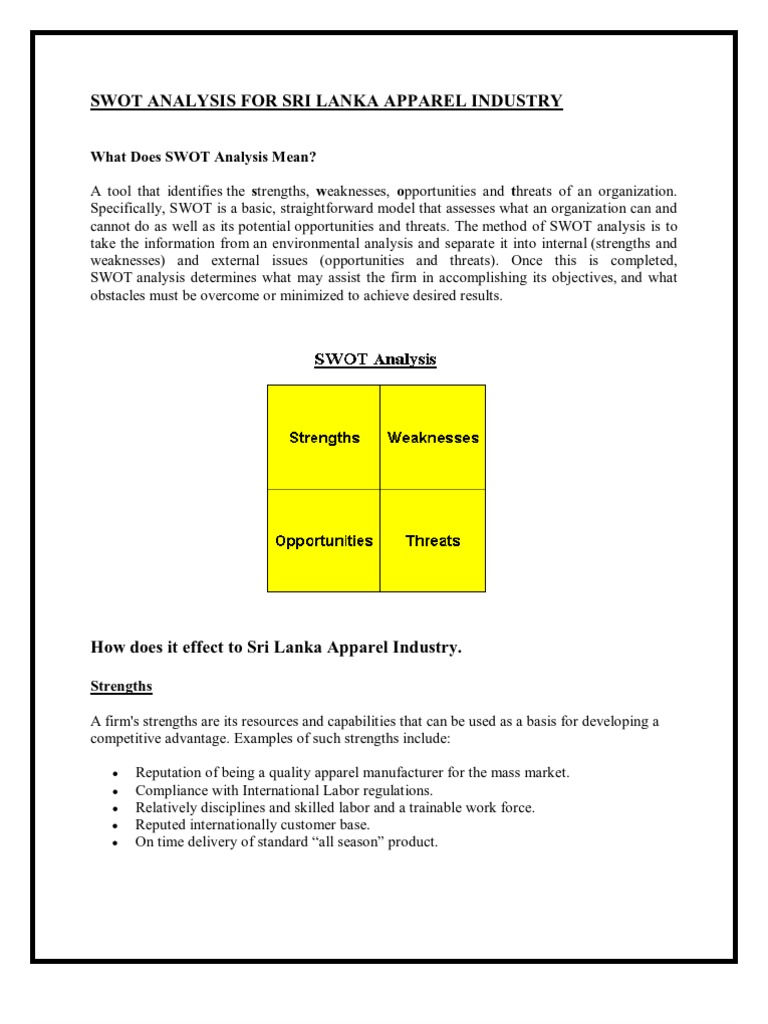 Swot Analysis For Sri Lanka Apparel Industry Pdf Swot Analysis Economies